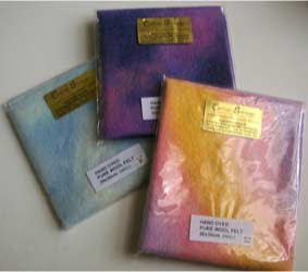 Look what arrived in the post today! I purchased some Colourstreams hand dyed wool felt. It was rather difficult choosing from their website, because the only colour preview they give you is of their thread skeins. It is extremely difficult to imagine how that translates into hand dyed fabric.