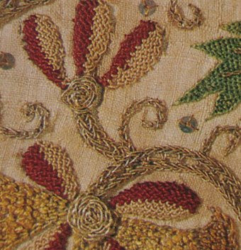 This is a close up of part of the cover of my book (“Three Hundred Years of Embroidery 1600-1900” by Pauline Johnstone). The image is dreadful quality, for which I apologise, but I really did want to show you what I meant.