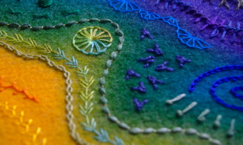 Following my enjoyable experiences working with Colourstreams hand-dyed wool felt for my left- and right-handed stitch dictionaries, I have recently learned of a thing called prefelt. My question was “What is prefelt?”