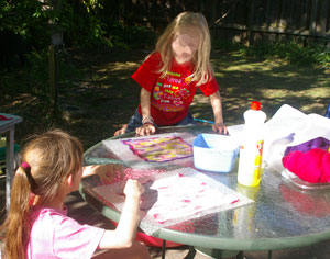 Yesterday was a lovely sunny day, with beautiful warm weather. It was the perfect day for some felting in the backyard. And so we did.
