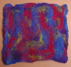 When I do wet felting without needlefelting first I am prepared for chance effects and enjoy them. I think in this case it is very important to use colours that go together well and are somewhat muted so the end result will look pleasing and be usable even if some colour swatches are out of place.
