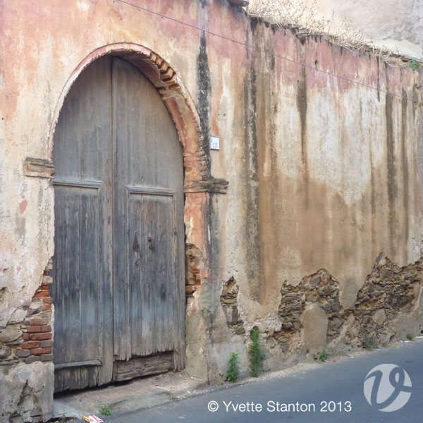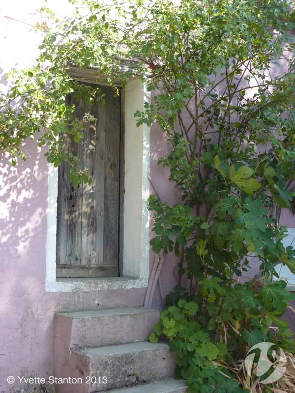 A pretty, rustic door with vines and plants, at Residenza Locci, where we stayed.