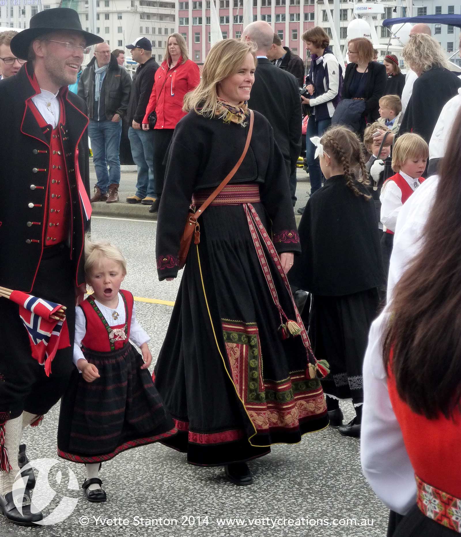 To help pass the time while I’m so busy, here’s a photo I took while in Bergen, Norway, last year. This was taken on 17th May which is Norwegian Constitution Day – the national day. There was a large parade through the town. Many were wearing local bunads such as those from Bergen, Voss and Hardanger. However, some were from further afield.